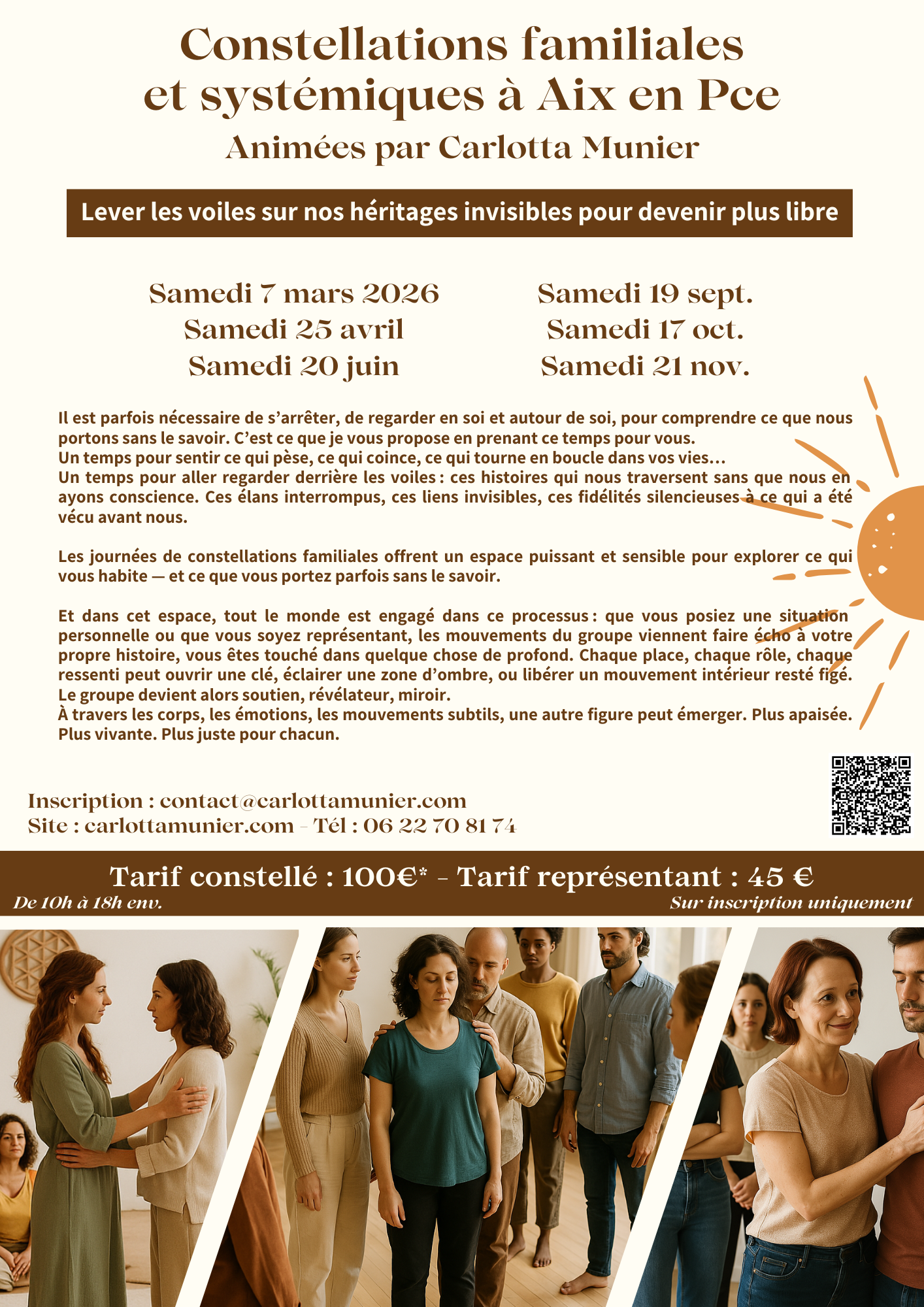 La force du travail en groupe réside dans cette intelligence collective : ce qui se révèle pour l’un résonne pour tous. Une constellation familiale est toujours une aventure partagéz, où chacun·e reçoit quelque chose, même — et parfois surtout — là où il·elle ne l’attendait pas.